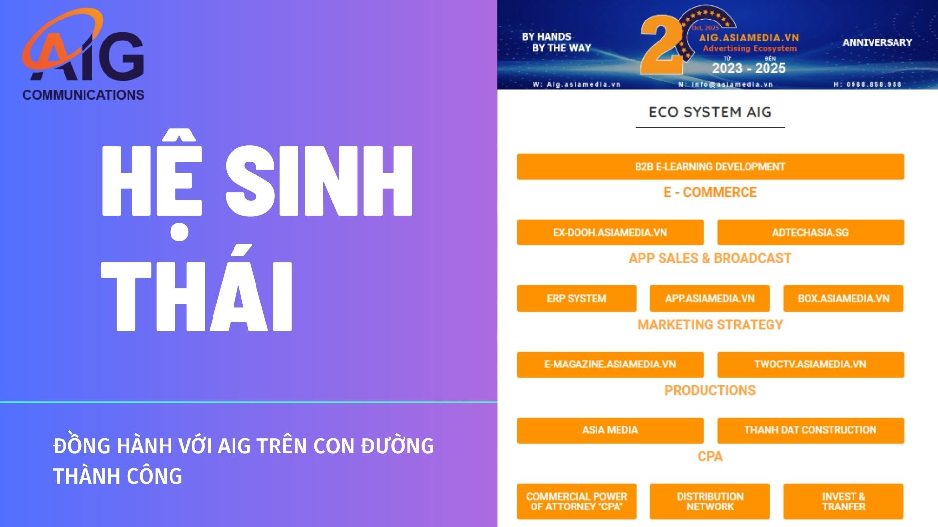 Kết nối với AIG – Kết nối với hệ sinh thái tăng trưởng Nếu bạn là nhà đầu tư, AIG là nền tảng. Nếu bạn là đối tác địa phương, AIG là sức mạnh công nghệ phía sau bạn. Nếu bạn là doanh nghiệp truyền thông, AIG là cánh tay kết nối thị trường.