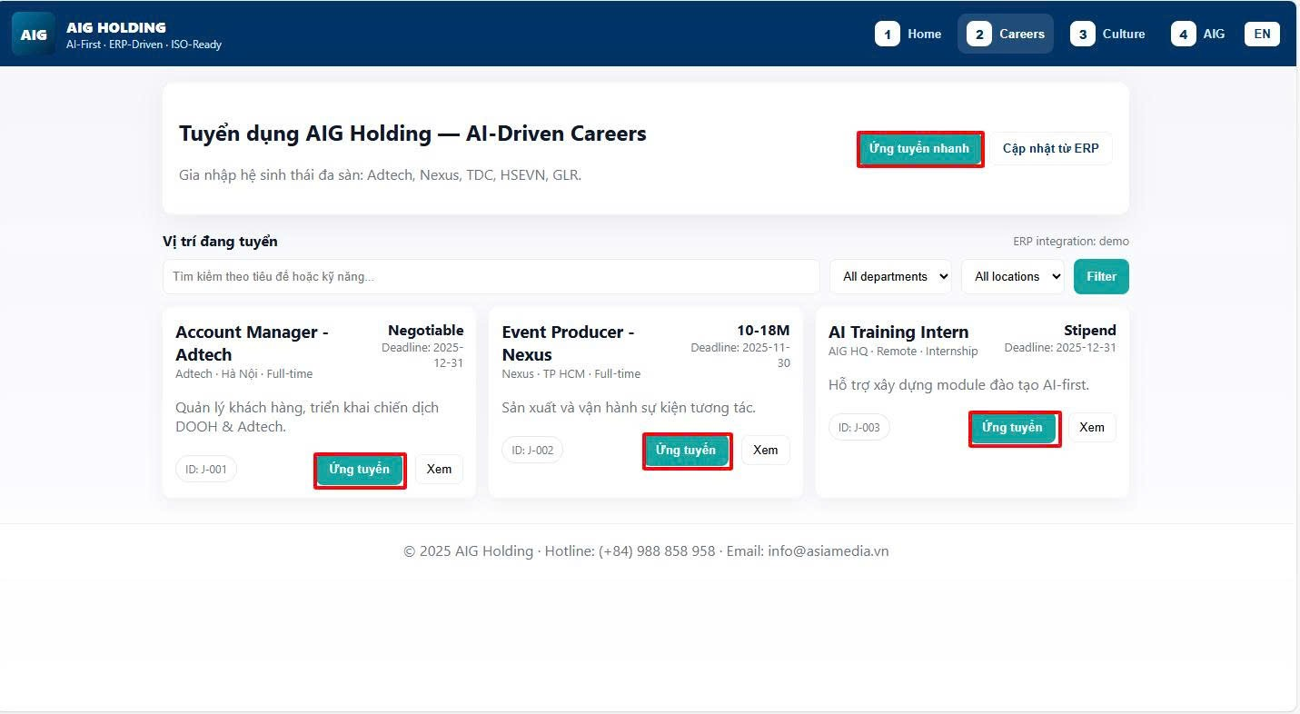 - Phúc lợi: Lương cạnh tranh, thưởng KPI, đào tạo AI-First, chứng chỉ ISO.