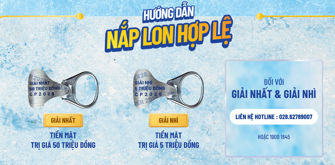 Từ ngày 01/04/2026 đến 04/05/2026, hàng triệu người tiêu dùng trên khắp Việt Nam (ngoại trừ một số tỉnh miền núi phía Bắc) có thể tham gia cuộc chơi này. Với cơ cấu giải thưởng hấp dẫn , hàng triệu giải thưởng đang chờ bật nắp.