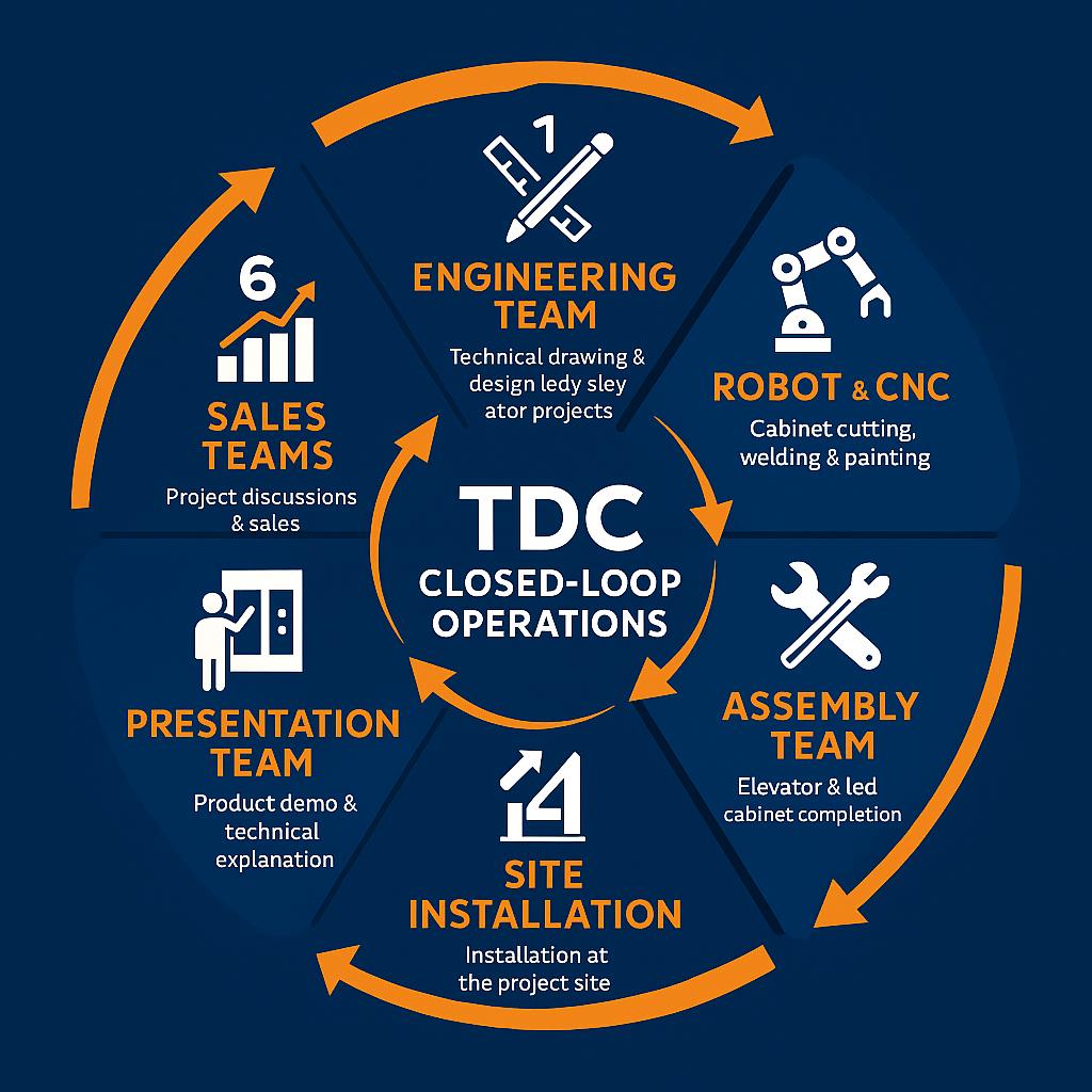 Thiết kế & R&D: đội ngũ kỹ sư nghiên cứu vật liệu mới, chip LED công nghệ cao, module màn hình chuẩn 4K, đảm bảo sản phẩm vừa đẹp, vừa bền, vừa tiết kiệm điện.