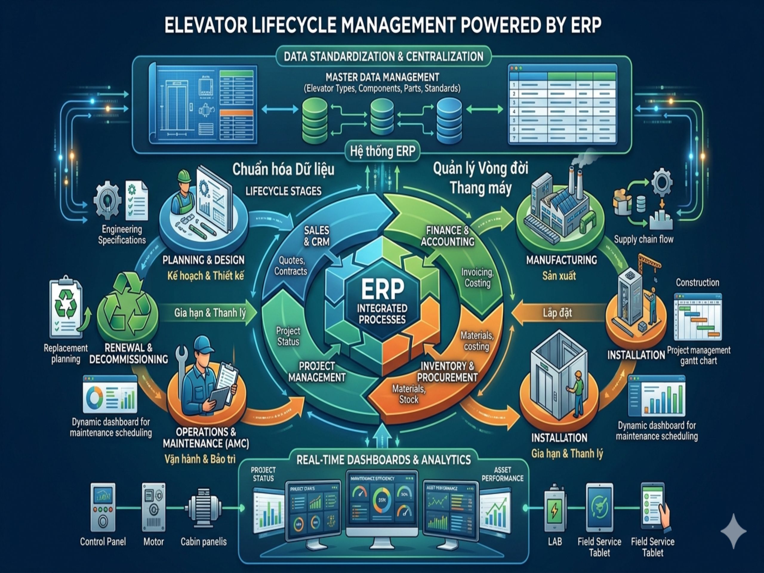 CHUẨN HÓA DỮ LIỆU, QUY TRÌNH VÀ QUẢN LÝ VÒNG ĐỜI THANG MÁY BẰNG ERP