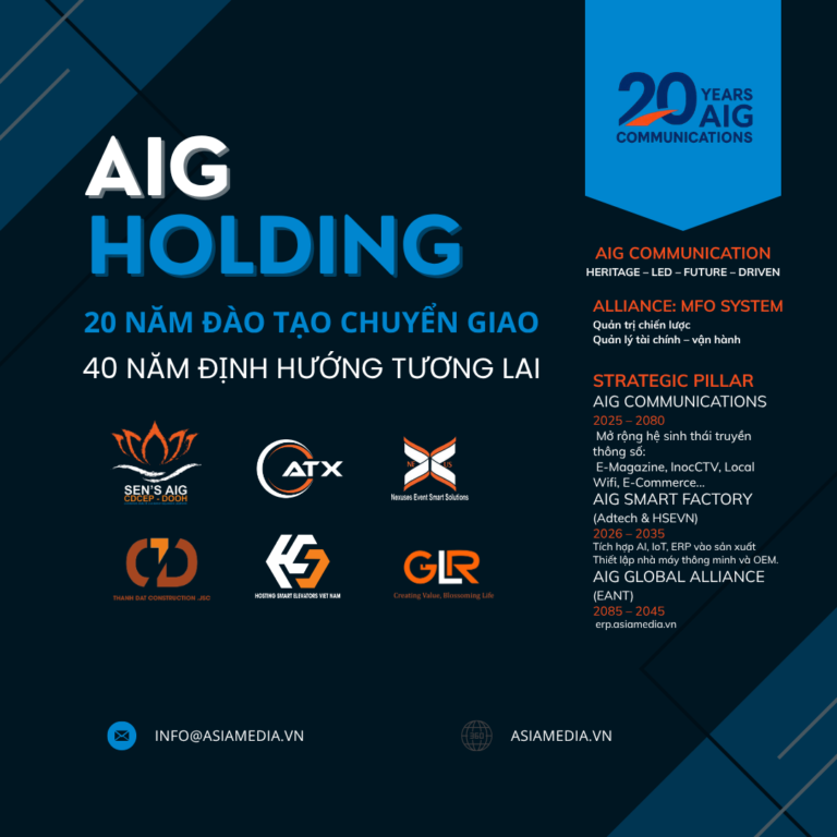 https://e-magazine.asiamedia.vn/wp-content/uploads/speaker/post-130229.mp3?cb=1760926355.mp3 Playback speed: 0.5x 0.75x 1x 1.25x 1.5x AIG HOLDING HÀNH TRÌNH 20 NĂM KIẾN TẠO & TẦM NHÌN 40 NĂM VƯƠN XA Hai thập kỷ qua, AIG Holding đã không ngừng mở rộng và hoàn thiện hệ sinh thái đa