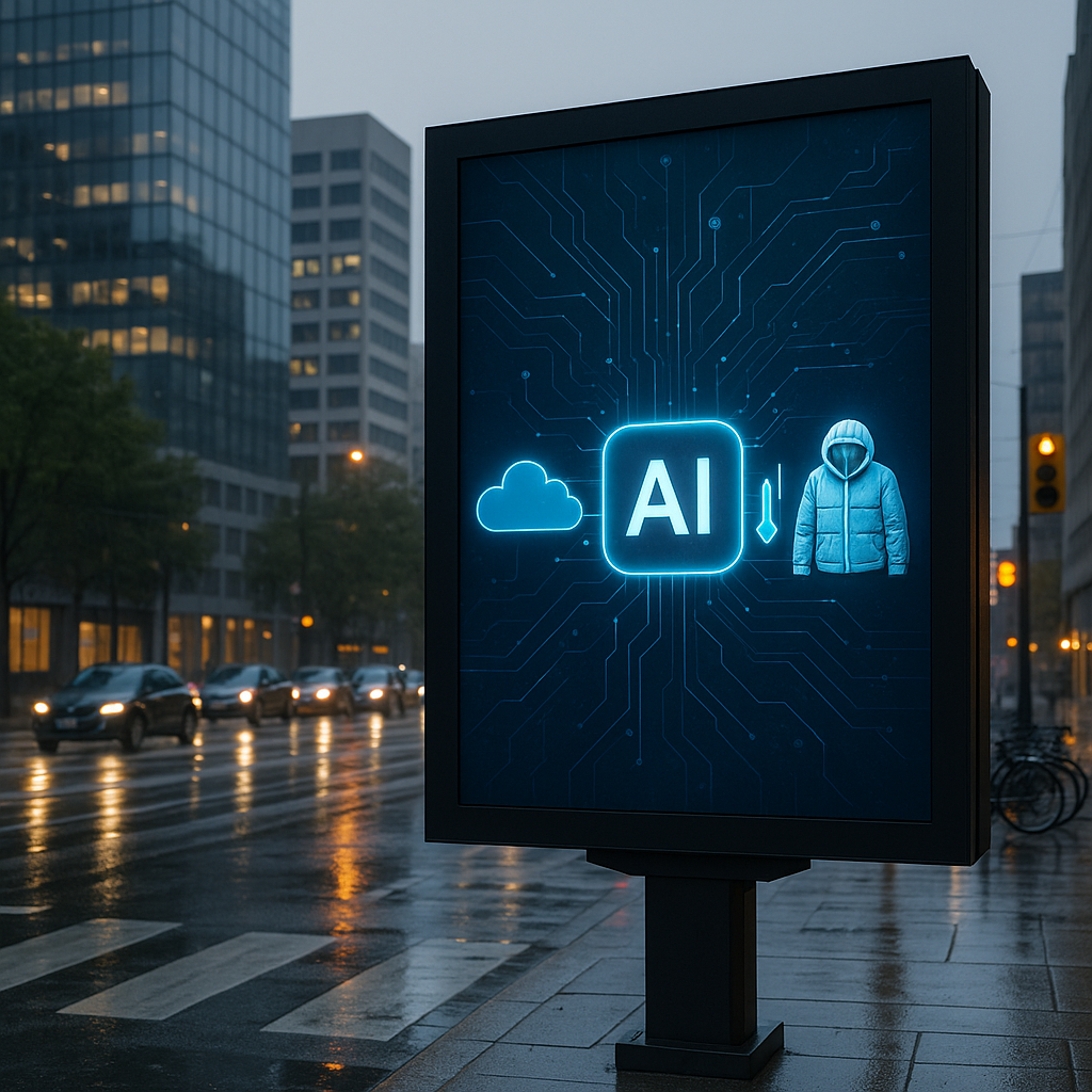 Với quảng cáo ngoài trời (DOOH/OOH), AI tự động điều chỉnh nội dung theo thời tiết, thời gian, mật độ giao thông – biến mỗi biển quảng cáo thành một “người dẫn chuyện” thông minh giữa phố phường.