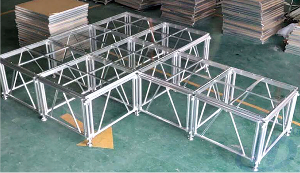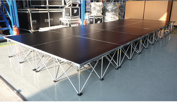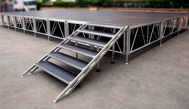 Loại sân khấu này ghép từ các tấm module tiêu chuẩn, kết nối bằng khóa hoặc móc liên kết, tạo thành mặt sàn liền mạch, chắc chắn.