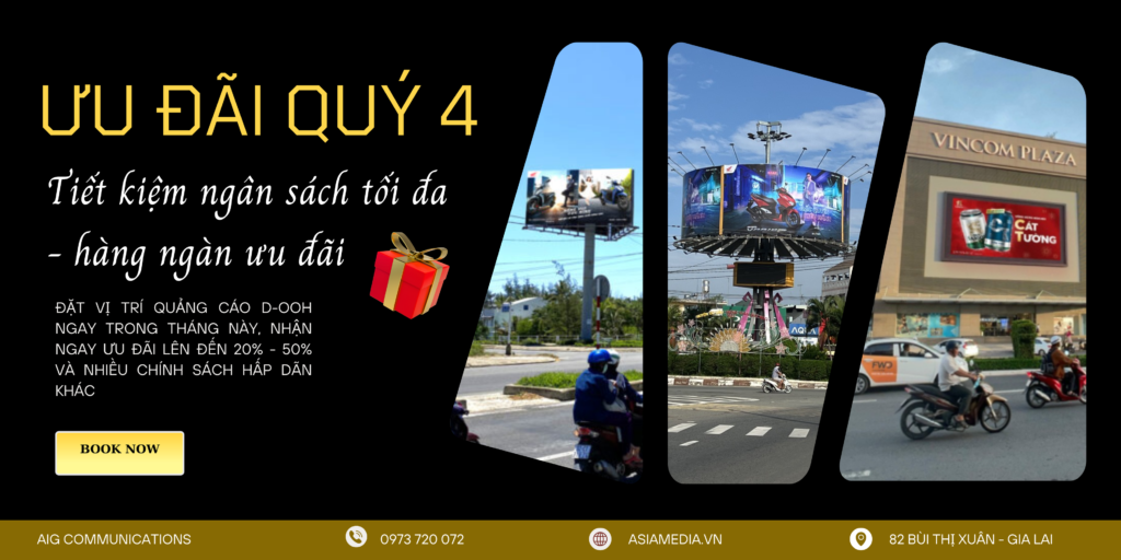 Với dịch vụ quảng cáo ngoài trời D-OOH của AIG HOLDING, doanh nghiệp bạn không chỉ tiếp cận hàng ngàn lượt người mỗi ngày mà còn tạo nên sự hiện diện sống động, bền vững và khác biệt giữa vô vàn thương hiệu ngoài kia.