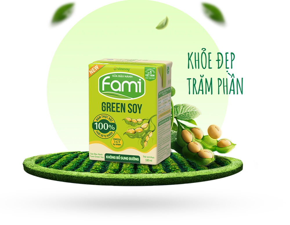 Sữa đậu nành Fami GREEN SOY lưu giữ trọn vẹn dưỡng chất dự nhiên từ đậu nành nhờ công nghệ nghiền nguyên hạt từ Châu Âu, đặc biệt là 100% chất béo tốt là OMEGA 3-6-9 và chất xơ tốt tự nhiên, mang đến hương vị thơm ngon, sánh mịn.