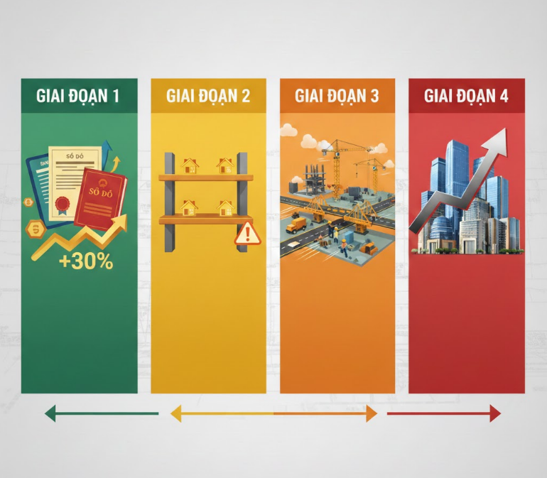 • 🔹 Giai đoạn 3 – 4: Hạ tầng tăng tốc thi công, tạo lực đẩy rõ rệt cho mặt bằng giá tương lai