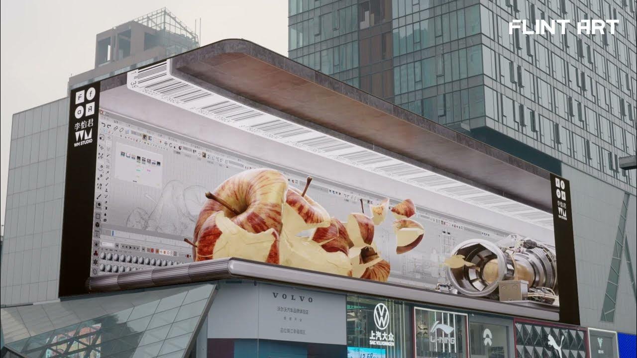 Các nghệ sĩ cũng đang tận dụng các nền tảng OOH để thể hiện sự sáng tạo của họ. Tác phẩm sắp đặt “Factory of Reality” của Yijun Li, do FLINT ART và Tạp chí 1314 DESIGN&ART giám sát, đã biến một tấm vải kỹ thuật số thành một nhà máy siêu thực đang tháo rời nhiều loại thực phẩm khác nhau. Tác phẩm nghệ thuật truyền thông mới công cộng này thách thức người xem phải suy nghĩ lại về thực tế, đưa ra một ví dụ tuyệt vời về cách thể hiện nghệ thuật có thể nâng cao không gian DOOH và truyền cảm hứng cho các chiến dịch thương hiệu sáng tạo.